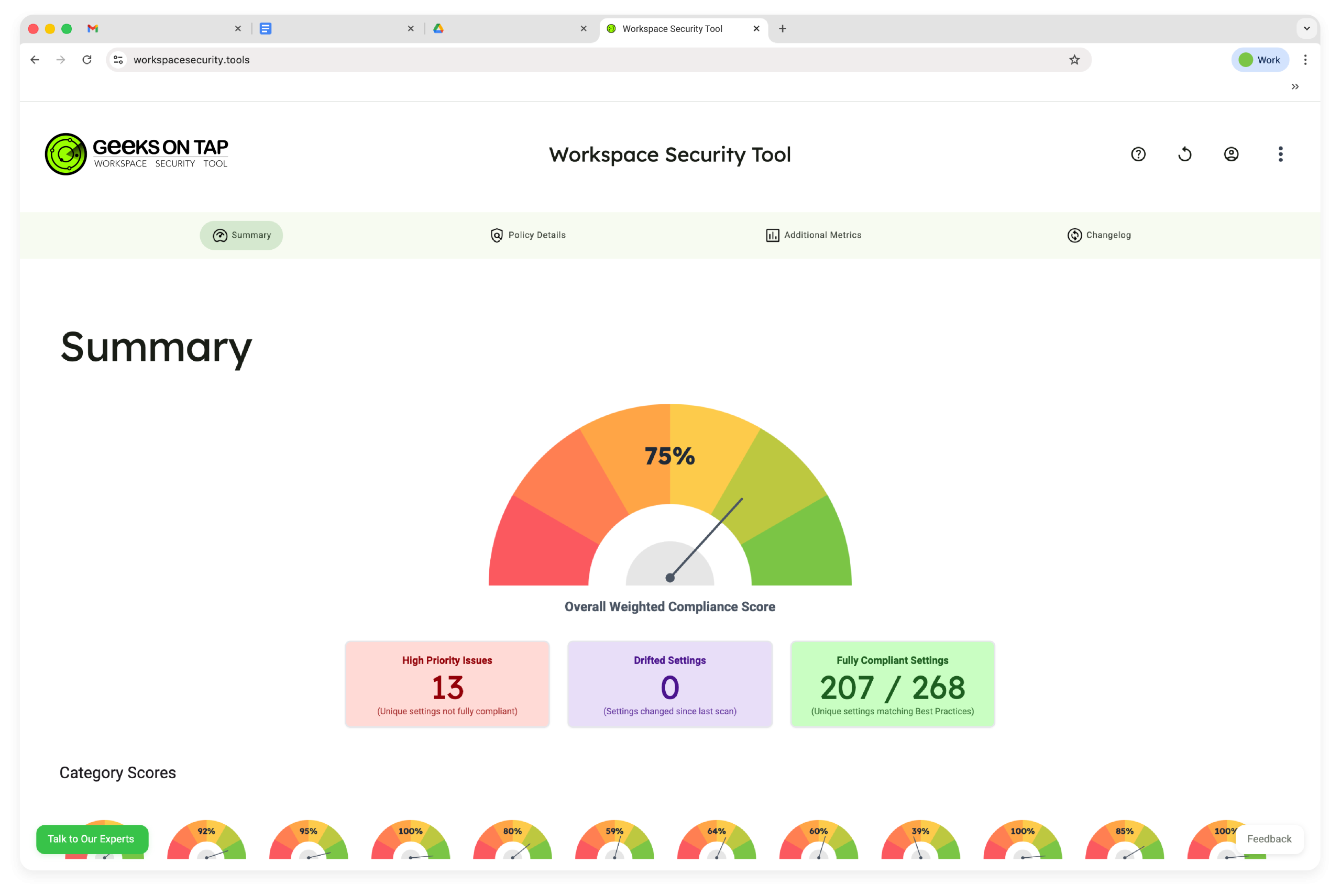 The knowledge base that powers the SAT is drawn from our team’s combined experience of over 50 years working exclusively with Google Workspace. This deep, practical knowledge is baked into the tool, using AI to deliver the most accurate security posture score possible.